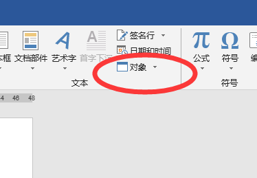 2. 点击工具栏上的“插入”的按钮,找到"对象"按钮