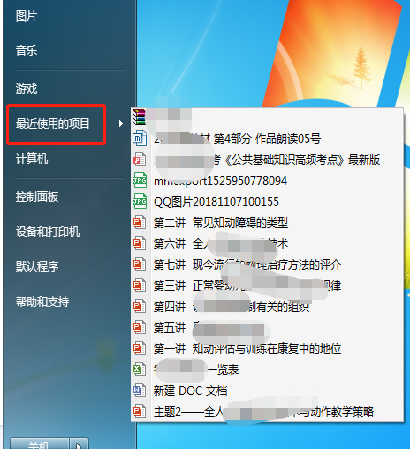 2.看你最近打开过什么文件(非程序)和文件夹(最近打开文件的历史记录)!