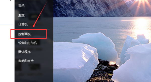 1、首先在电脑的开始菜单页面内点击“控制面板”选项。