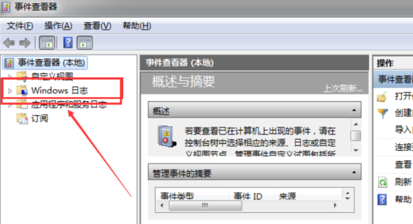 4、接着在打开的新的对话框内点击左侧的“Windows日志”选项。