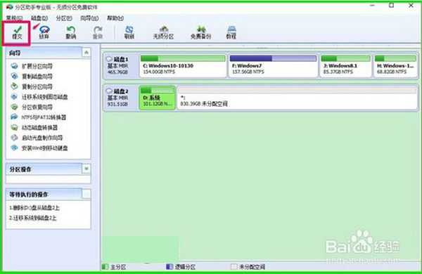 7、回到分区助手窗口,点击左上角的提交;