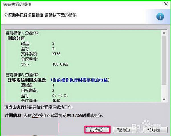 8、此时弹出一个等待执行的操作的对话框,我们点击:执行;