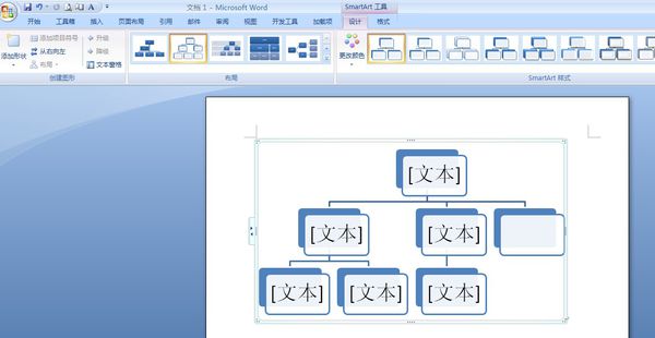 这个时候已经插入了组织架构图了,接下来自己填充文本,在格式里面选择你想要的颜色啊大小啊等细节设置