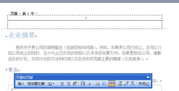 7.在第一节的页眉位置,编辑页眉内容;