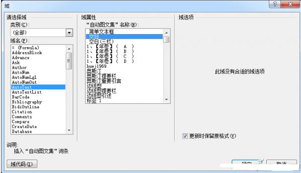 如果参考答案或评分标准中含有图形、图片,我们可以在文档中需要输入参考答案或评分标准的位置,点击“插入→文档部件→插入域”,选择“域名”框里的AutoText和“域属性/自动图文集名称”框内的“空白”后“确定”(图3)。这样,文档相应位置就会出现一个“文本域”,在其中输入文字并插入图片,最后选中整个“文本域”,在“字体”对话框中把“字体颜色和效果”设置为“红色”“隐藏”,这样参考答案或评分标准中的图形、图片和文字就一并隐藏起来了。