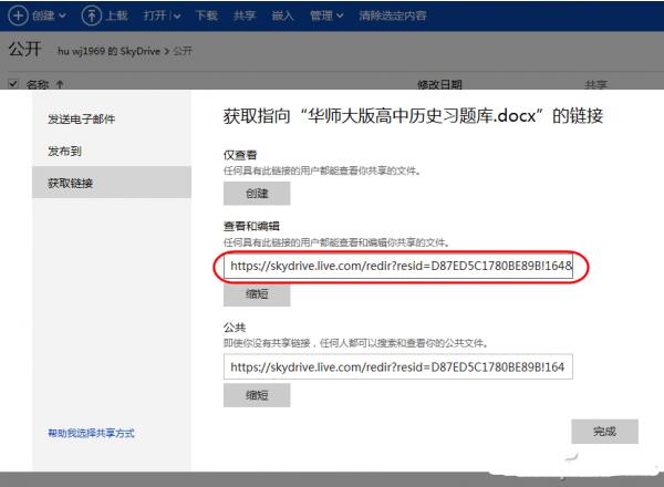 在SkyDrive.com中,还可以授权题库建设合作者“查看和编辑”文件夹中的内容。右键单击SkyDrive文件夹中你希望共享的文档,选择“共享→获取链接→查看和编辑”,获取指向该文档的链接。这样你就可以通过电子邮件、MSN、QQ或微博等方式发送指向该文档的链接(而不是发送附件),轻松地与他人共享该文档(图5)。
