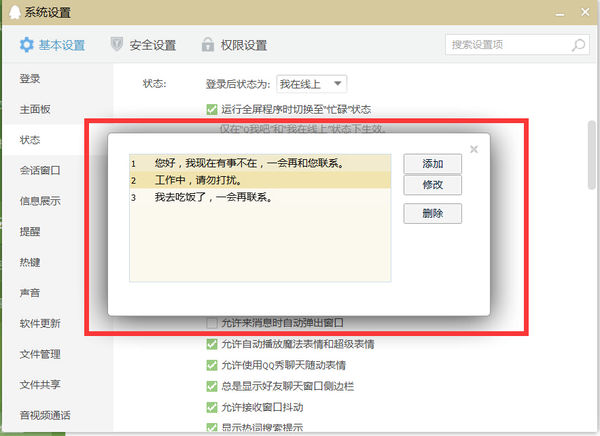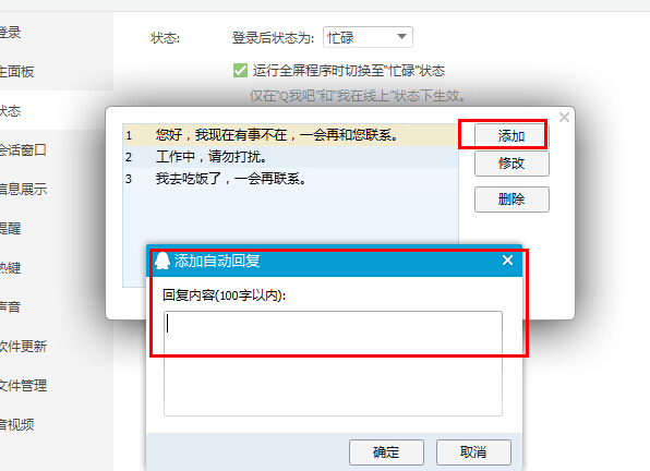 qq自动回复内容默认的是:【您好,我现在有事不在,一会再和您联系。】