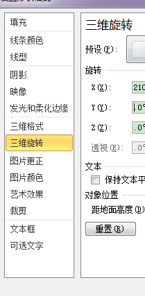 通过三维格式和三维旋转可以变成。右键厂方行就会出现该图的菜单
