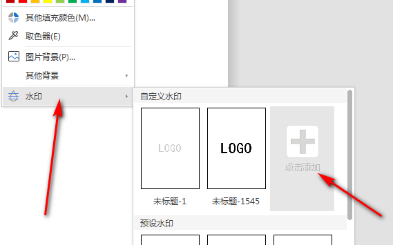 5、还可以自定义水印,点击水印---自定义水印,如图所示;