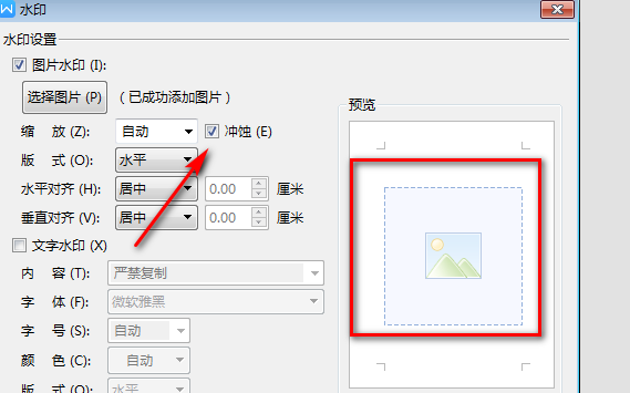 6、在弹出的水印对话框中可以看到需要设置的选项,如图所示: