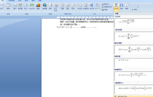 2、进入公式编辑状态,页面上出现如图所示的模板,输入相应的文字即可。