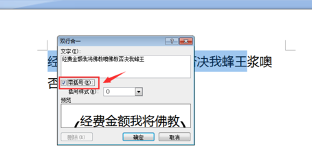 3、在弹出的窗口,可以选择是不中带括号,点击确定;