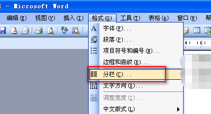 选定你想要分栏的那部分的全部,格式/分栏就ok了