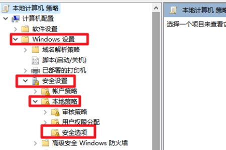 2、然后我们在弹出来的窗口中点击打开计算机配置/windows设置/安全设置/本地策略中的安全选项。