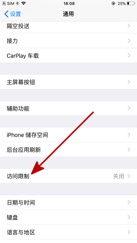 3、进入通用界面后,找到“访问限制”按键,点击并进入。