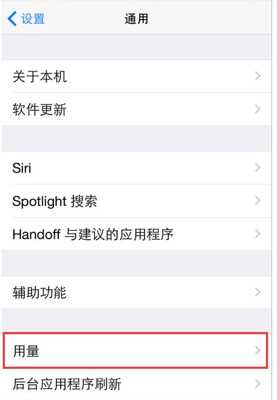 3、在打开的通用页面中,往下翻页面,可以找到用量栏目,点击打开。
