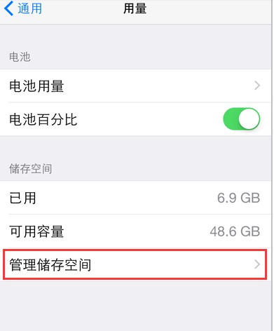 4、进入用量页面,在页面最底部打开管理存储空间。