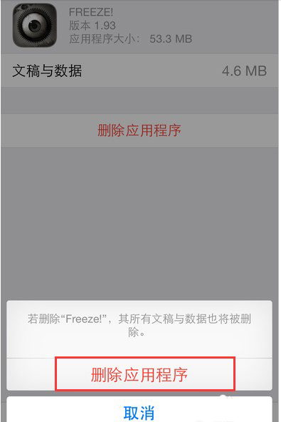 3、系统提示是否删除该应用,若删除,其所有数据也都被删除掉,确定的话点击删除即可卸载掉该应用了。