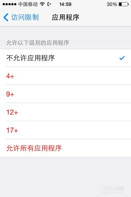 第四步 选择“不允许应用程序”来隐藏所有从App Store下载的从应用程序。