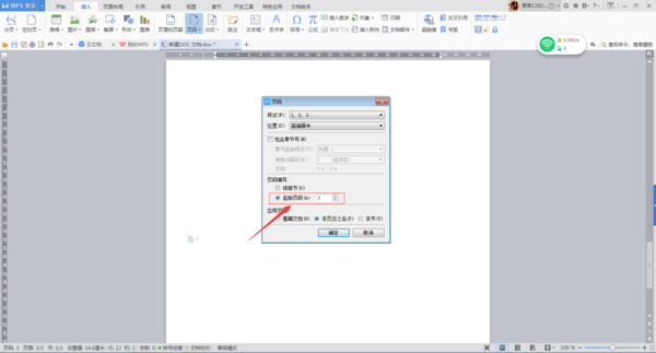 设置,选中下方的“起始页码”选项,默认显示“1”(此处数字即为正文首页显示的页码),确定,退出。
