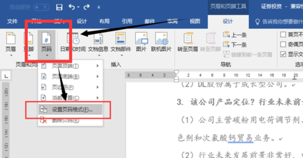 8. 然后选择“页码”——“设置页码格式”。