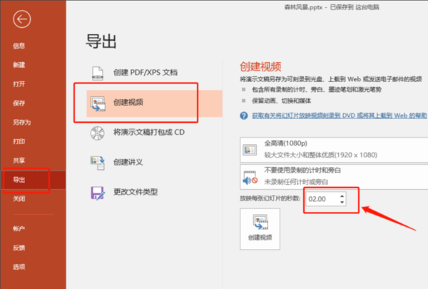 我用PPT2016制作视频文件时,为什么会导出不到呢