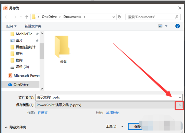 4、弹出的界面,我们点击保存类型边上的下拉箭头;