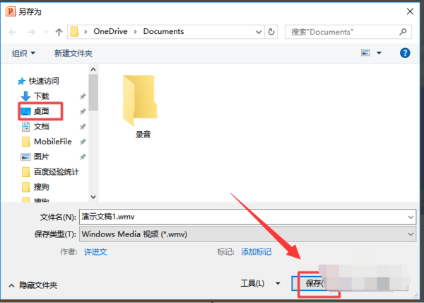 6、然后我们选择保存的位置,此处我们选择保存在桌面上,之后我们点击保存;