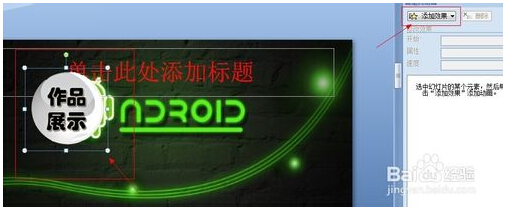 5、点击你放上去的图片,会成选中状态,右侧的动画设置的“添加效果”按钮由灰色变成亮色。