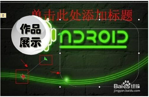 12、动作路径选择好之后,PPT上会有动作路径线。 蓝色代表起点,红色代表终点。长度和方向代表移动的长度和方向。