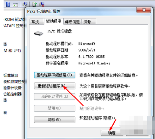 2、在键盘属性里面,有一个更新驱动程序的按钮,可以点击此按钮更新一下试一试,如果确实是因为驱动问题,点击之后问题应该能得到解决。