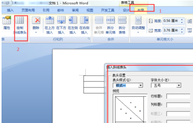2、在“布局”选项卡上,单击“绘制斜线表头”。