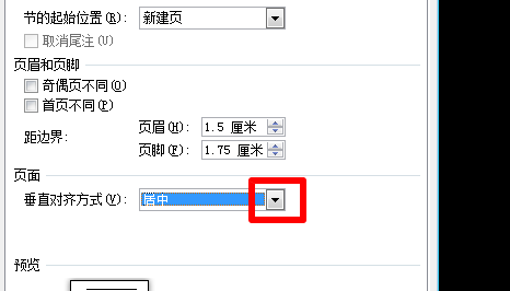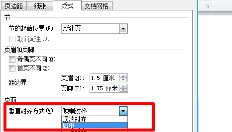 垂直居中:文件-页面设置-版式-页面-垂直对齐方式-选择“居中”