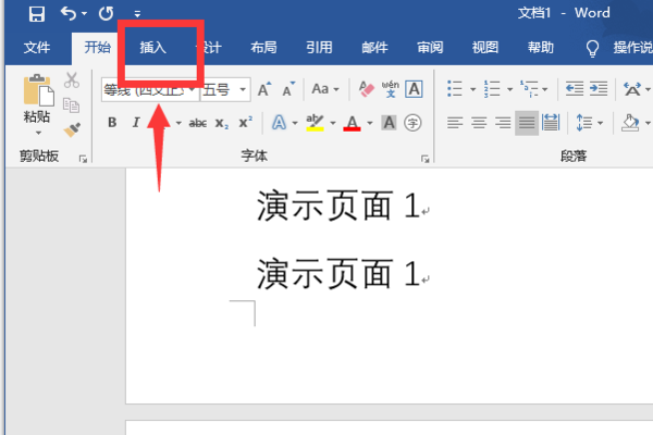 1、打开word文档,点击word顶部工具栏上的“插入”按钮: