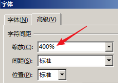 选择第二个。字符间距。在第一行字符缩放中选择200你看是不是变了?呵呵