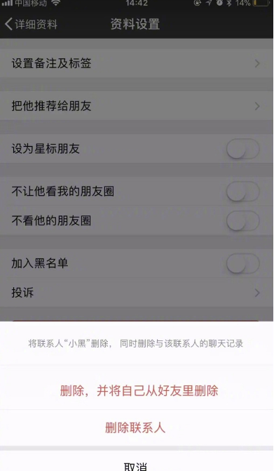 1、支持双向删除好友功能,在进行删除好友操作时,有“删除联系人”和“删除,并将自己从对方好友里删除”两个选项。这样一来,自己就不会出现在已经删除好友的列表中了。