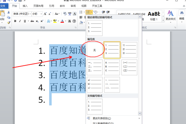 1、打开需要操作的WORD文档,在开始选项卡中,点击段落编号后面的下拉按钮。