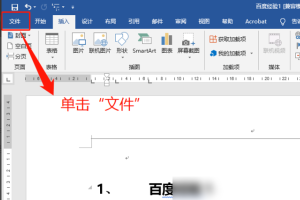 2、进入“Word文档”窗口,在上方点击“文件”选项卡打开。