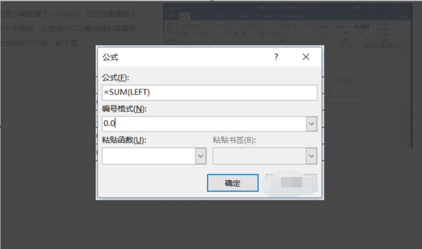 3、公式中出现公式“= SUM(LEFT)”,这意味着对左侧的单位求和,然后单击“确定”。