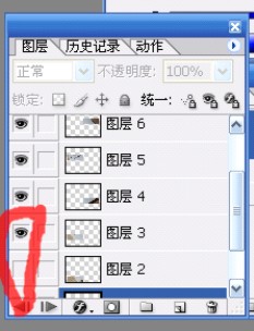 五、接下来是你想要哪张图片在前面,你就在哪张图片前面点亮眼睛。(注:打开Imageready的时候所有的图层都是隐藏的)