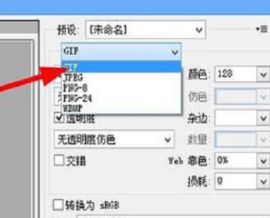 7、选择文件 —— 存储为web和设备所有格式,预设格式为GIF即可。