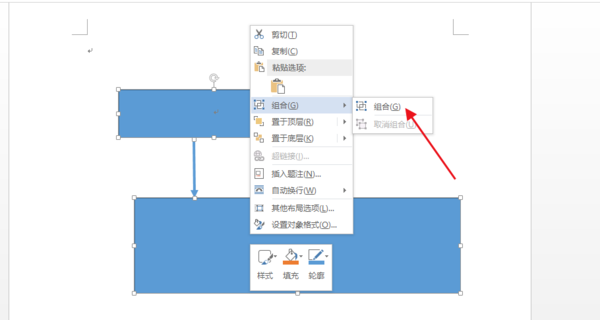 3、然后在矩形上任意一处右击鼠标,点击弹出的窗口中的组合(G)。
