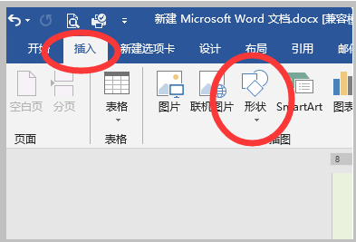 2、点击“插入”选项卡中的“形状”选项。