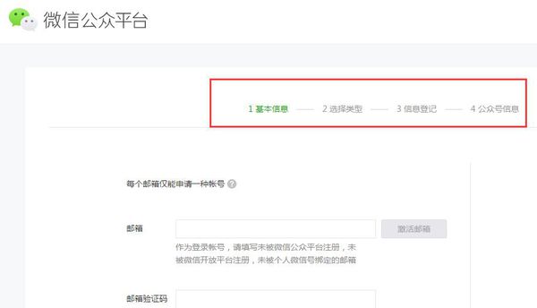申请公众号方式为: