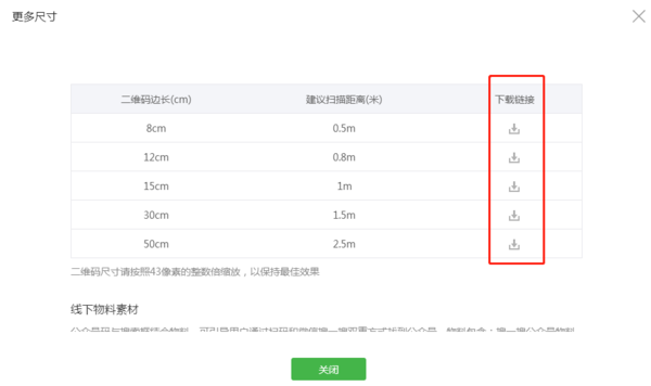也可以点击那个“更多尺寸”查看下载更多尺寸的二维码