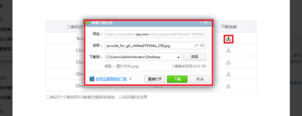 4、弹出小窗口,这里就可以下载二维码了;