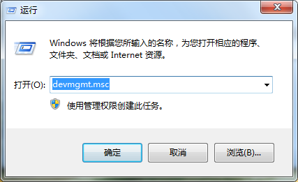 1、按win+r,输入devmgmt.msc,点击确定;