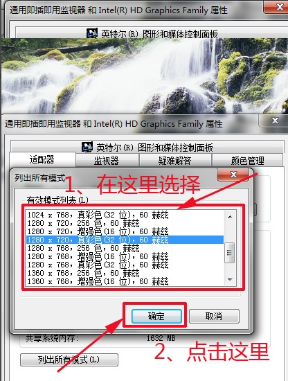 这时,会打开一个新的对话框,在里面选择一种合适的分辨率,点击“确定’。