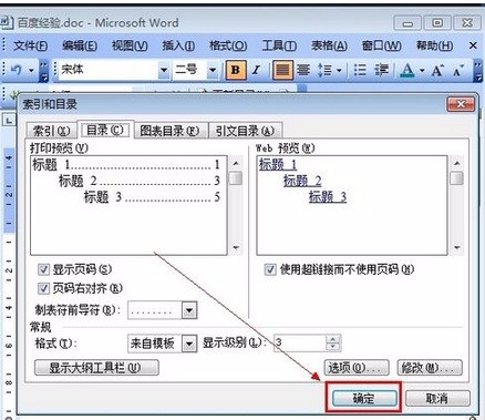 6.选第二个选项卡[目录],然后点右下的确定。就OK了。