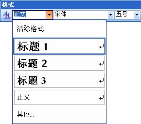 二. 设目录标题的样式:在文件中选中第一个目录标题的文本,从 “格式”菜单中选取“样式”选项,并从中选取刚才定义的样式,其它的目录标题文本也采用相同的方法处理。